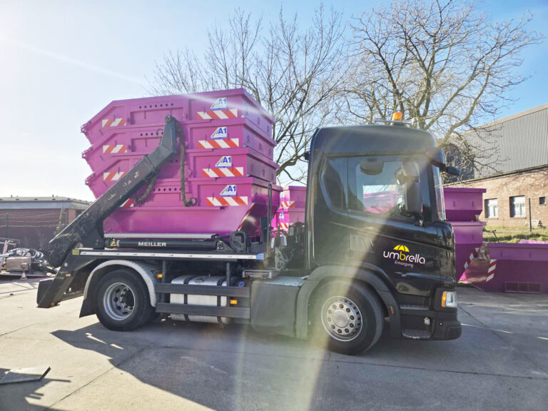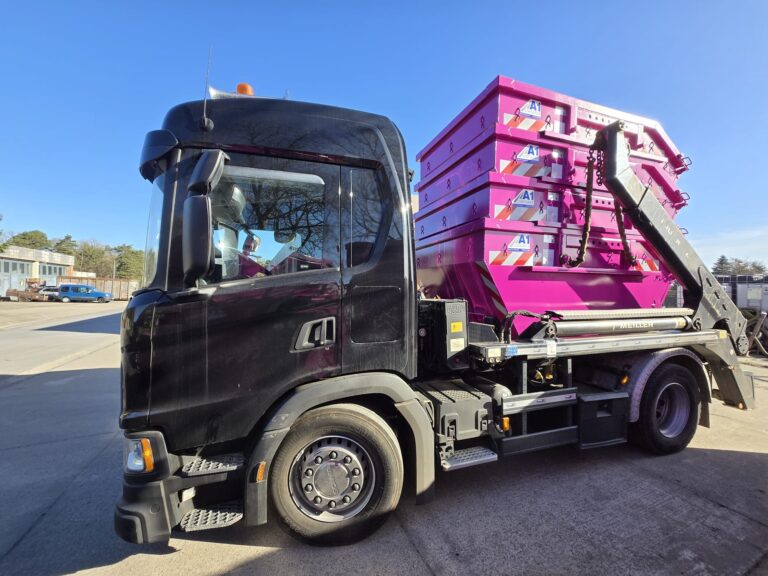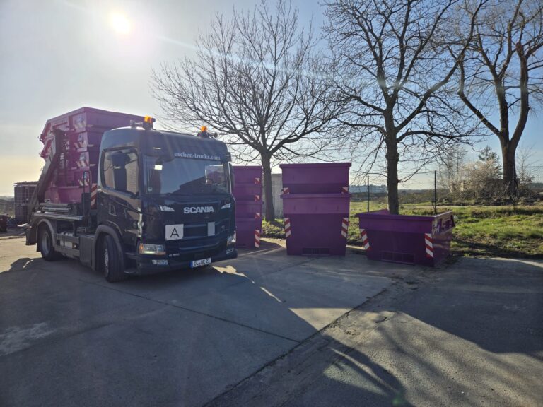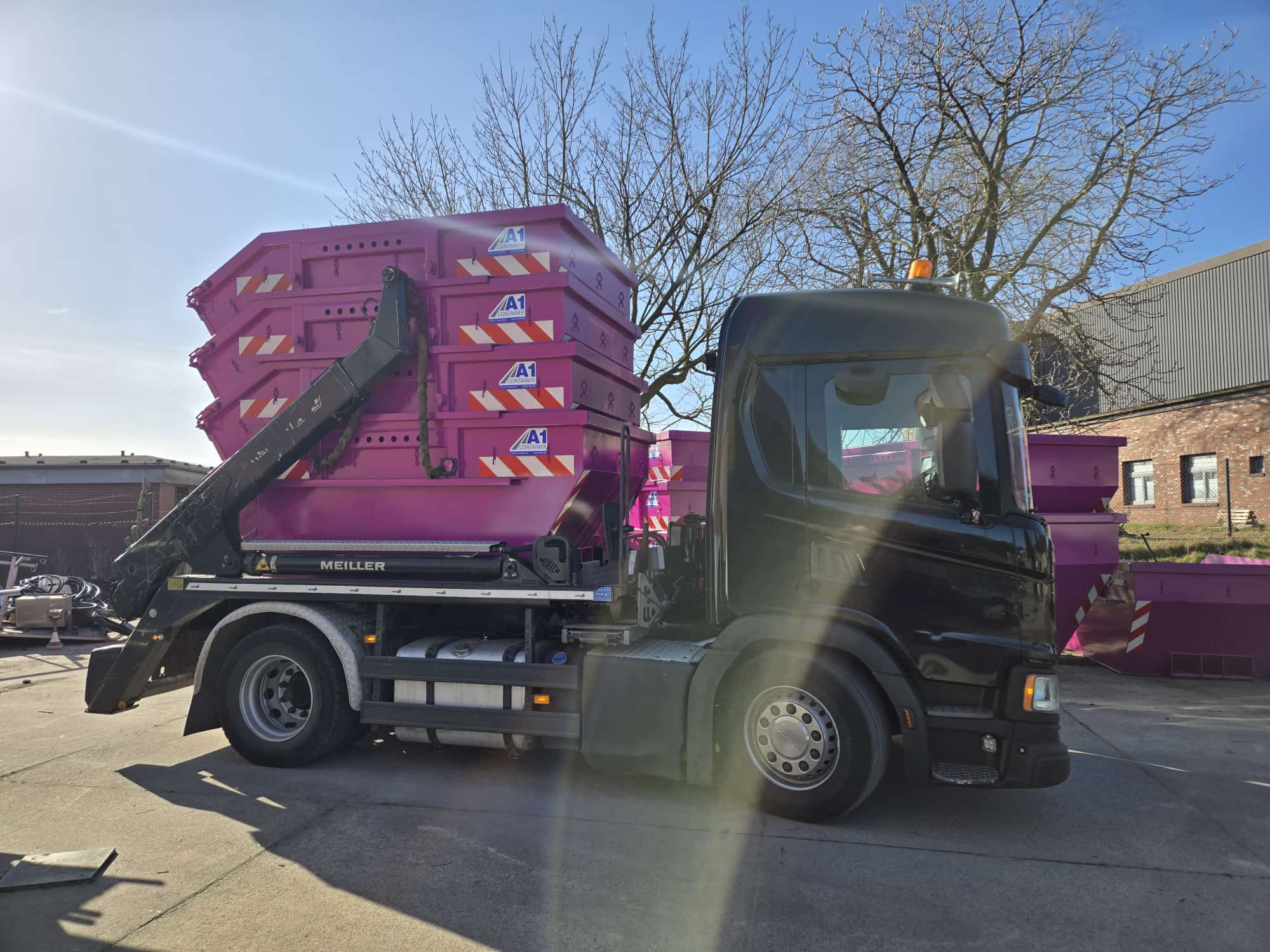 Mit einer Vielzahl an Containern in unterschiedlichen Größen sind wir bestens ausgestattet, um Deine Entsorgungsbedürfnisse zu erfüllen. Um sicherzustellen, dass wir die Container schnell und zuverlässig zu Dir bringen können, setzen wir auf unsere leistungsstarken Schlepper im Fuhrpark. Unser Markenzeichen: Pinke Container